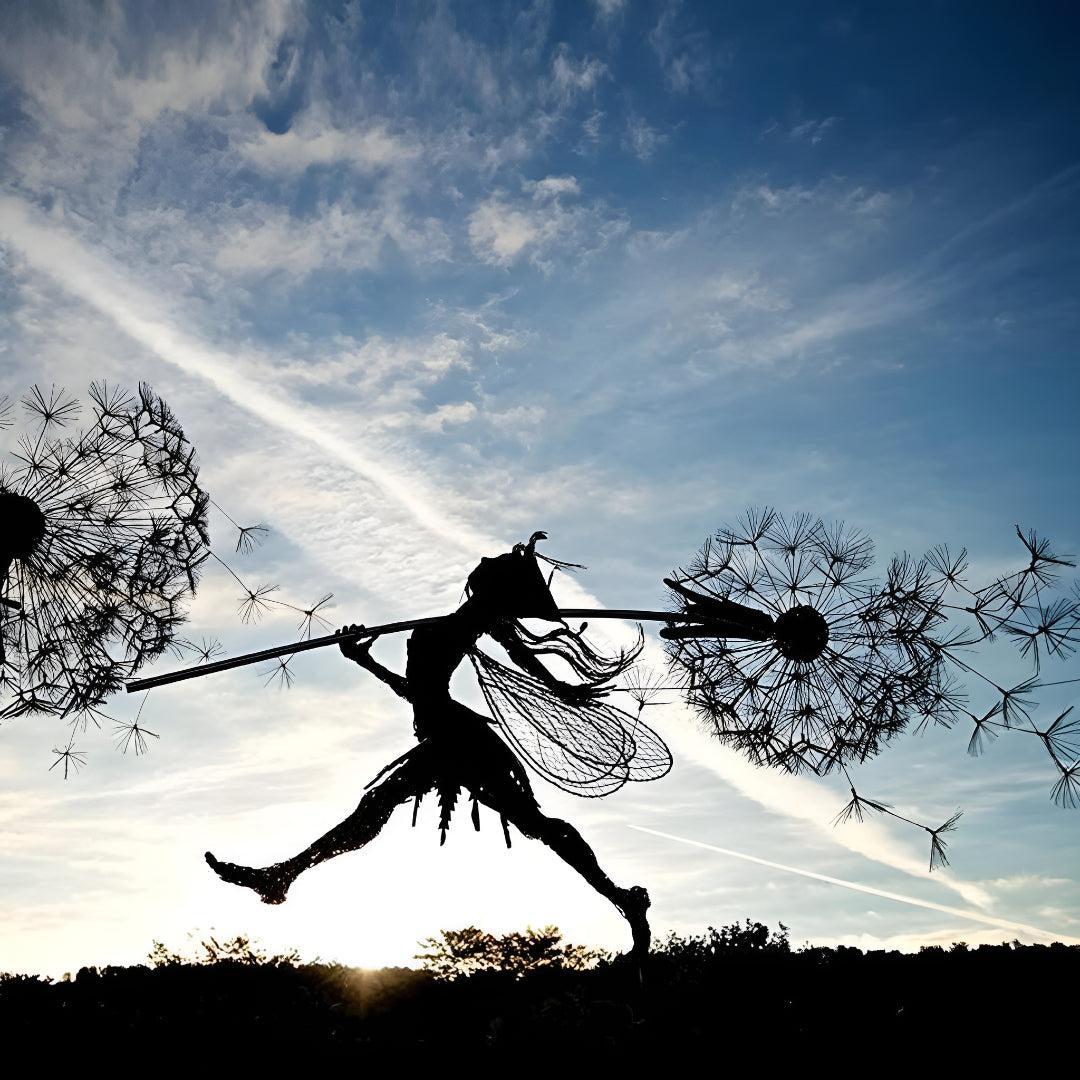 Turn your outdoor space into something truly special with a fairy garden ornament that captures attention and imagination. This metal garden sculpture showcases enchanting figures dancing with dandelions, creating a scene that transforms ordinary lawns into conversation-worthy displays. Designed with intricate wirework and delicate wing details, it brings artistic expression to flowerbeds, pathways, and patios throughout every season.